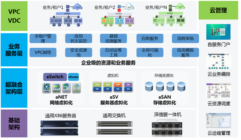 - 通过自主可控的云平台管理实现资源的服务化,构建IaaS平台。
