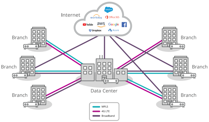 Software-Defined Wide Area Network(SD-WAN)即软件定义广域网络,是将SDN技术应用到广域网场景中所形成的一种服务。 这种服务用于连接广阔地理范围的多分支、DC互联、跨国场景及云服务,旨在帮助用户降低广域网的开支和提高网络连接灵活性。 基于软件定义的技术可以优化广域网传输链路,建立优质的广域网传输网络,从而替代部分或者全部昂贵的广域网专线,比如MPLS、IEPL等。
