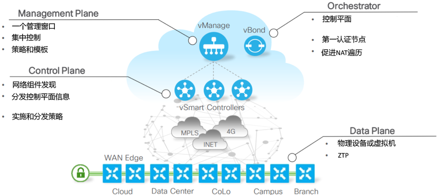 vSmart是用来管理、配置、监控SD-WAN的控制层面,保证整个Overlay网络的安全传输。