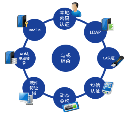 支持多种认证方式组合使用,保障接入用户的身份安全。