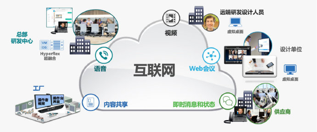 提供了与办公室环境一致的协作体验,打破了办公区域的边界。其一体化的协作架构不仅具有语音、视频和内容共享等多项功能,同时支持协同研发、供应链协同、