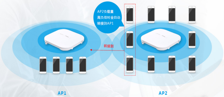 负载均衡技术,支持基于无线AP负载情况合理分配接入终端,使每个AP接入数量趋于均衡,同时5G终端优先接入5G频段,确保用户快速上网。